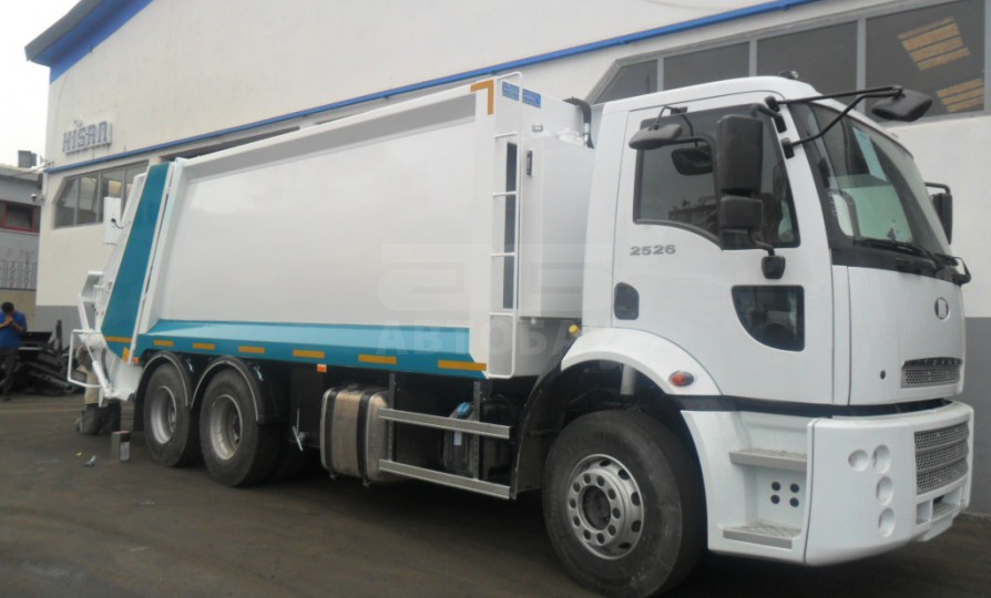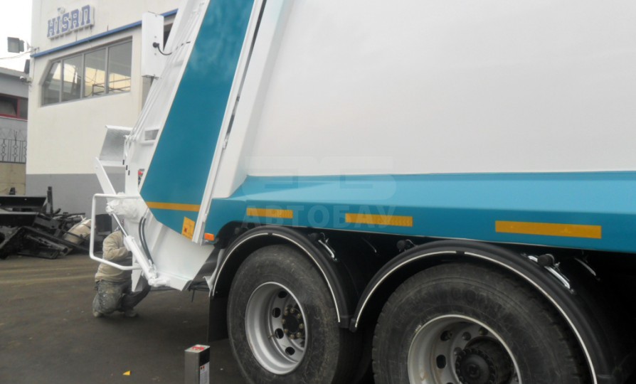 Мусоровозное оборудование установлено на шасси с полной массой 26 тонн. Оборудование оснащено кантователем контейнеров для механической выгрузки мусора из контейнера объёмом 120, 240, 360 литров, баков 0,75 и 0,8 куб. м. и евроконтейнеров 1,1 куб. м. в приемный бункер мусоровоза.