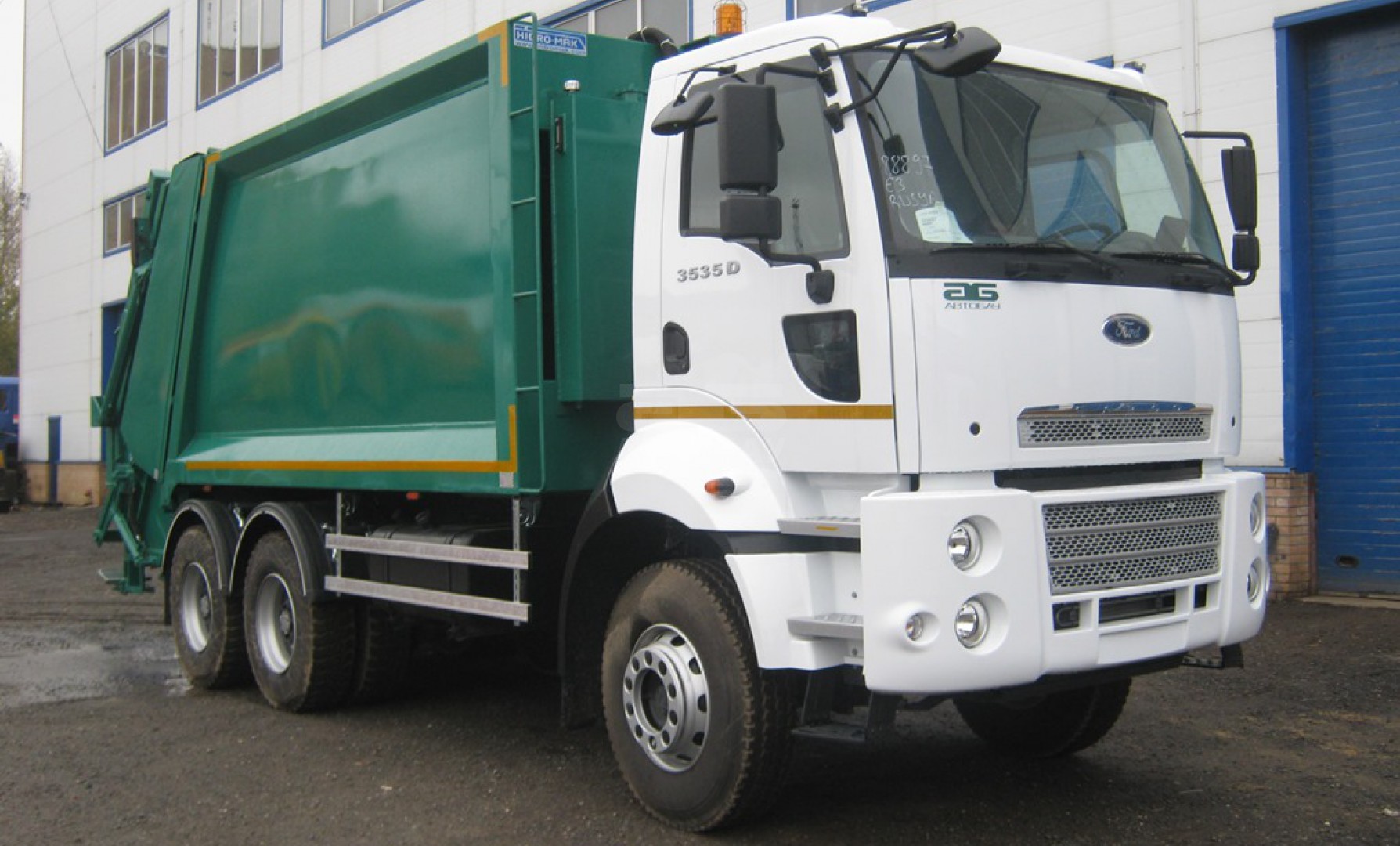 Мусоровозное оборудование установлено на шасси с полной массой 26 тонн. Оборудование оснащено кантователем контейнеров для механической выгрузки мусора из контейнера объёмом 120, 240, 360 литров, баков 0,75 и 0,8 куб. м. и евроконтейнеров 1,1 куб. м. в приемный бункер мусоровоза.