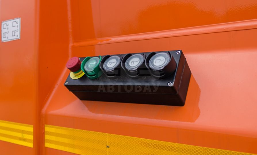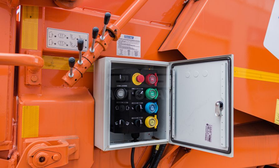 Основной бункер разгружается выталкивающей плитой после поднятия заднего борта. Операция осуществляется при помощи рычагов расположенных за кабиной. В процессе разгрузки применяются кнопка «подгазовки» и кнопка «одиночного цикла», необходимая для разгрузки мусора из загрузочного бункера при поднятом загрузочном бункере.