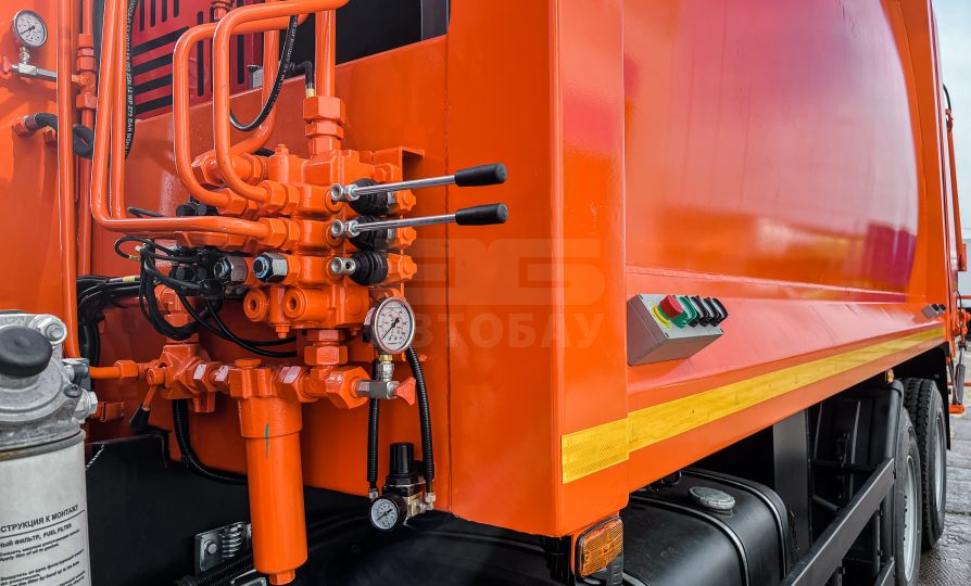 В мусоровозном оборудовании предусмотрена система отвода жидкости, образующейся в процессе прессования. Система состоит из заглубления в передней части надстройки с последующим отводом в бак для сбора жидкости и сливного крана из загрузочного бункера.