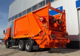 Данный вид коммунальной техники представляет собой мусоровоз с задней загрузкой, у него в задней части кузова расположен специальный механизм, который после выгрузки мусора моет изнутри мусорный контейнер под высоким давлением водой или дезинфицирующим составом, очищая его от остатков мусора. Все больше коммунальных компаний по всему миру отдают предпочтение именно мусоровозу с функцией мойки контейнеров, так как использование таких мусоровозов приводит к выстраиванию оптимальной логистической цепочки при вывозе мусора и содержании контейнеров и площадок для сбора мусора.