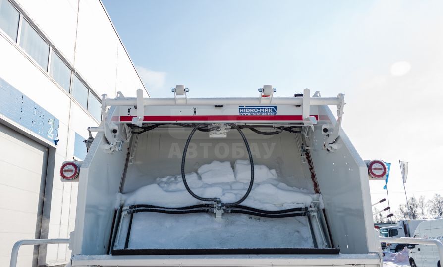 Мусоровоз имеет прессующую плиту, изготовленную из высокопрочной стали, выполняющую функцию забора и прессования отходов из загрузочного бункера в основной (приводится в действие четырьмя гидроцилиндрами), и выталкивающую плиту, которая выполняет функцию обратной нажимной пластины и позволяет производить процесс подпрессовки. В зависимости от плотности отходов, коэффициент уплотнения может увеличиваться до 1:6.