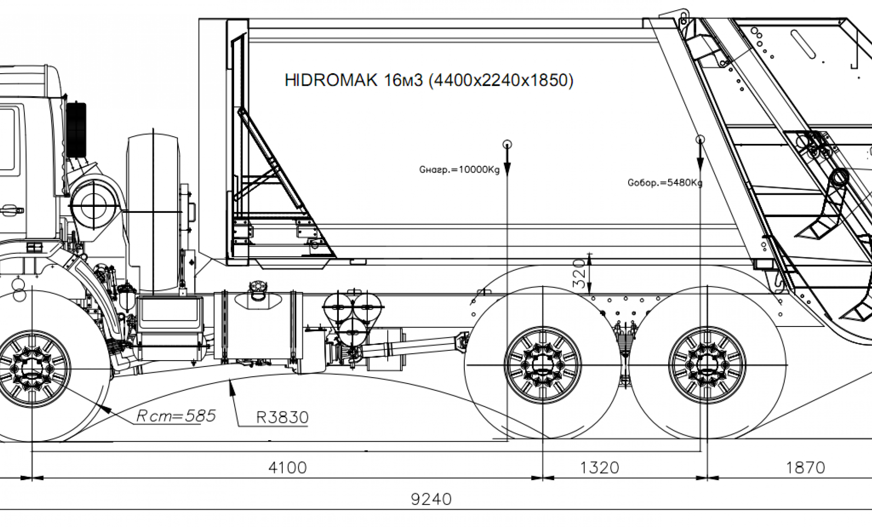 Мусоровозное оборудование установлено на шасси колесной формулой 6х6 и полной массой 21 тонн. Оборудование оснащено кантователем контейнеров для механической выгрузки мусора из контейнера объёмом 120, 240, 360 литров, баков 0,75 и 0,8 куб. м. и евроконтейнеров 1,1 куб. м. в приемный бункер мусоровоза.