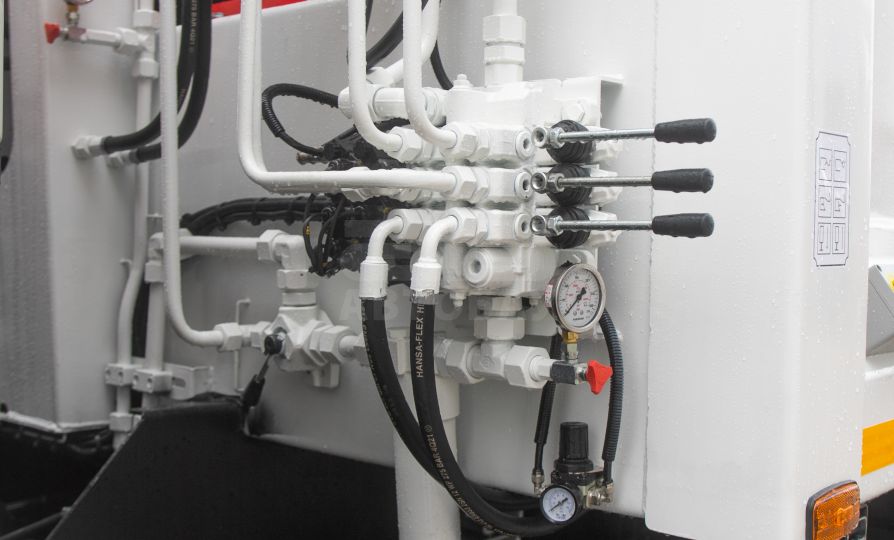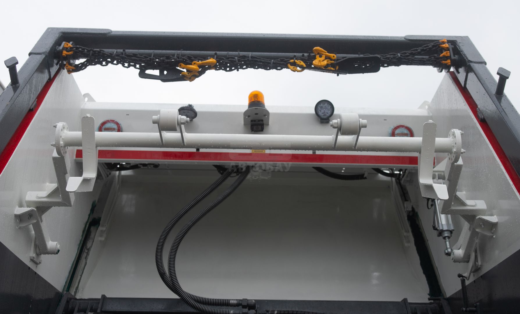 В мусоровозном оборудовании предусмотрена система отвода жидкости, образующейся в процессе прессования. Система состоит из заглубления в передней части надстройки с последующим отводом в бак для сбора жидкости и сливного крана из загрузочного бункера.