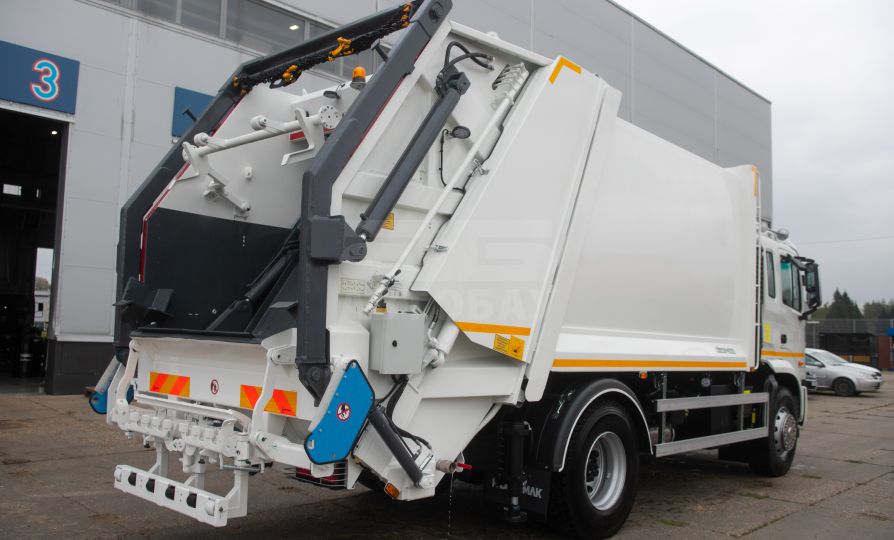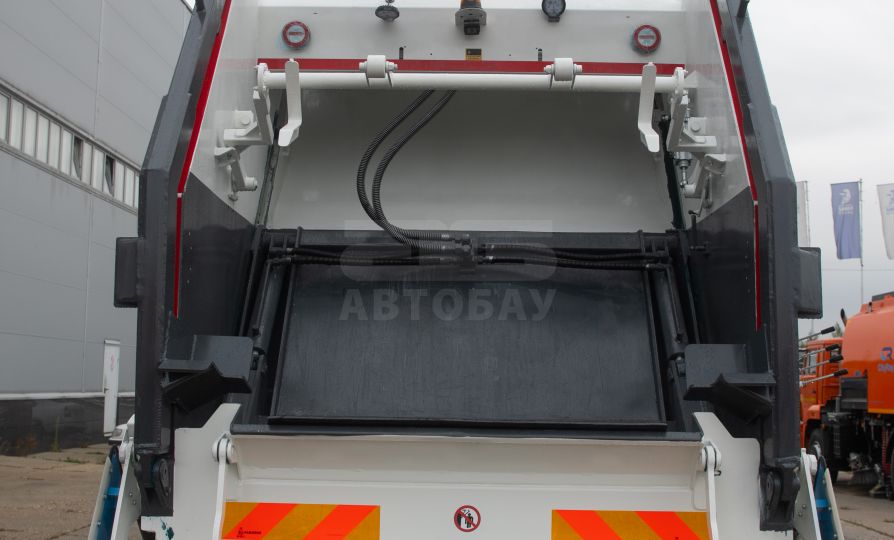 Мусоровоз имеет прессующую плиту, изготовленную из высокопрочной стали, выполняющую функцию забора и прессования отходов из загрузочного бункера в основной (приводится в действие четырьмя гидроцилиндрами), и выталкивающую плиту, которая выполняет функцию обратной нажимной пластины и позволяет производить процесс подпрессовки. В зависимости от плотности отходов, коэффициент уплотнения может увеличиваться до 1:6.